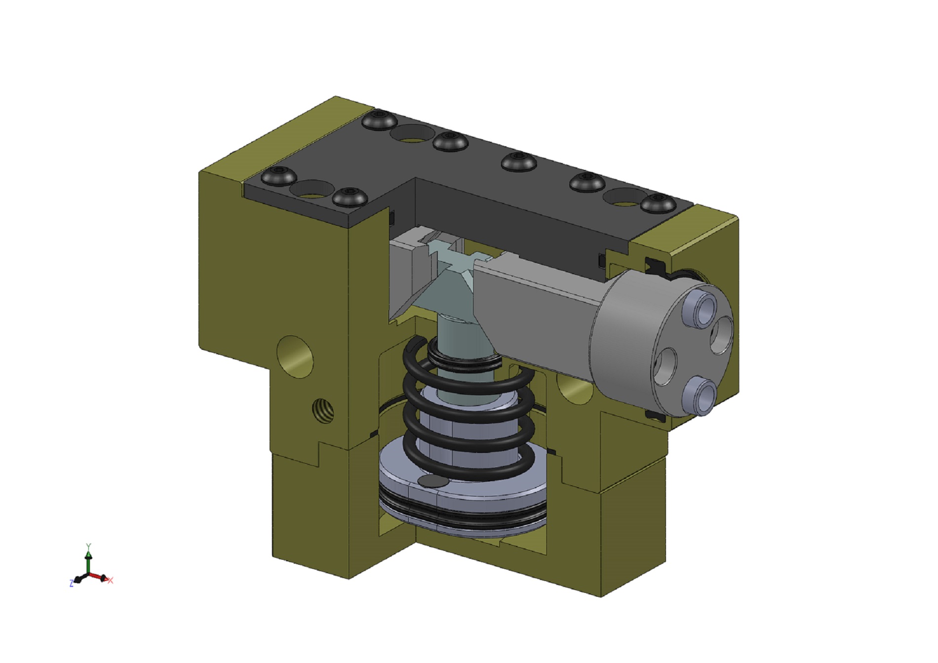 Il dispositivo meccanico di mantenimento della forza di presa garantisce un forza minima di presa anche in caso di perdita di pressione. Nella variante MC questa agisce come forza di chiusura, e nella variante MA come forza di apertura. La seguente immagine mostra la variante MC. Il mantenimento della forza di presa si può usare anche per aumentare la forza stessa di presa o semplicemente per una presa a effetto semplice.